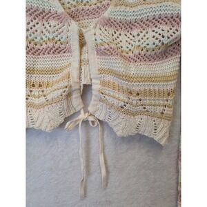 Aeropostale Womens Small Cropped Tie Front Cardigan Striped Pointelle Knit Pink