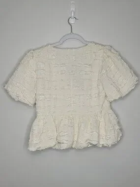 Idem Ditto top: cream brown, tie bows, short sleeve, preppy, scholar