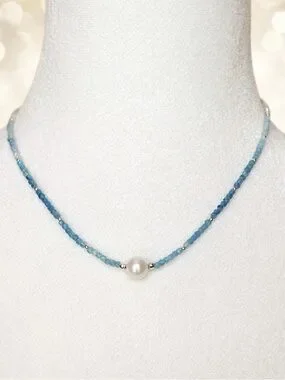 Handcrafted with care, this matching jewelry set features Santa Maria aquamarine beads in a soft ocean-blue gradient, each centered with a luminous 10mm freshwater pearl.
