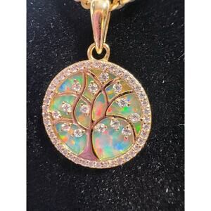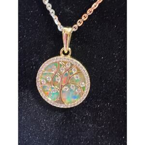 Moissanite Opal Tree of Life Necklace- 14k Vermeil over 925