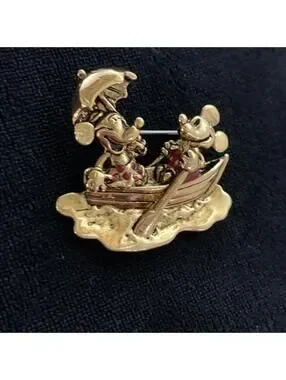 Capture a piece of Disney magic with this vintage Napier golden Mickey and Minnie Mouse rowboat brooch pin. A charming addition to any Disneyana collection, this piece showcases the iconic duo in a playful rowboat, crafted with attention to detail to bring the beloved characters to life.