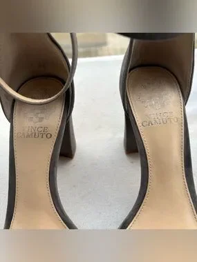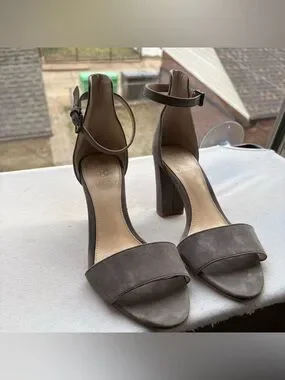 Vince Camuto Taupe Suede Ankle-Strap Block Heels