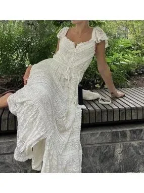 Gorgeous Dress lace all over lots of stretch !!! In Excellent Condition Button up ,white,80% cotton , 20% nylon PTP is Approx is 19"