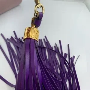 MOSCHINO Couture LEATHER Long Tassel Keychain Bag Charm Purple