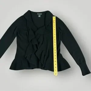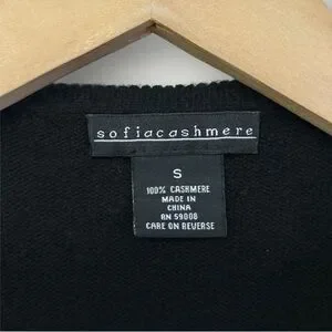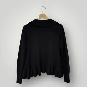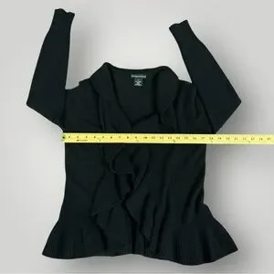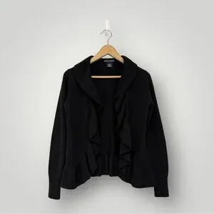 Sofia Cashmere Coquette Ruffled 100% Cashmere Cardigan Sz S Black