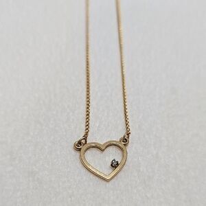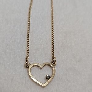 This Vintage Artistry 12k gold filled necklace features a delicate design adorned with a natural diamond in a heart pendant.