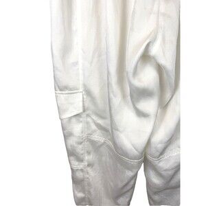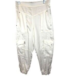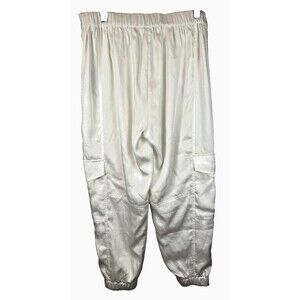 AllSaints Freda Satin Cargo Joggers 6 Ecru Pull On Elastic Waist 90s Y2K