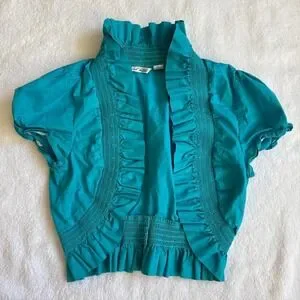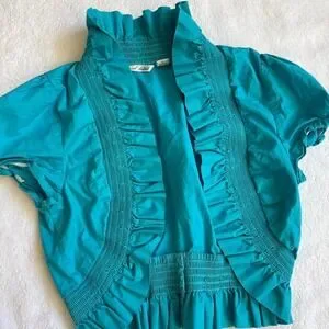 70s retro blue cropped ruffled blouse blazer