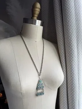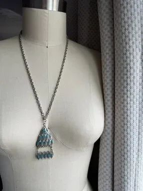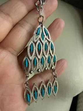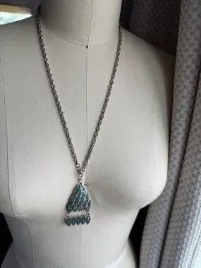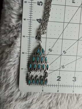 Vintage | Silver-tone Turquoise Color Pendant Dangle Bohemian 24 Inch Necklace.