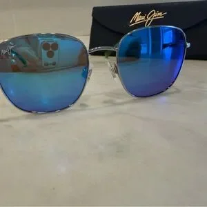 Maui Jim Silver Frame Lipine Sunglasses with Blue Mirrored Lenses