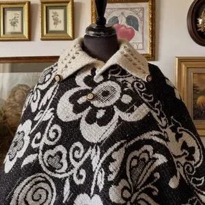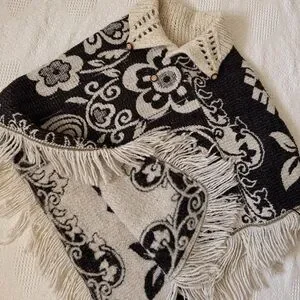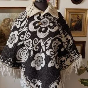Unique & one of a kind hand made vintage 1970s tapestry poncho. The sweetest boho fairy spring layering piece with whimsical floral & butterfly design.