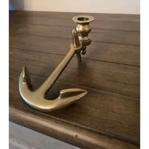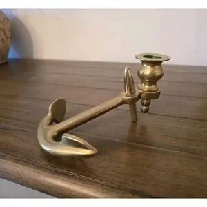 Vintage Nautical Solid Brass Anchor Candlestick Candle Holder Boat Yacht Decor