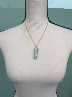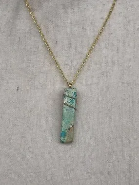 Blue Rectangular Stone Pendant Necklace with Gold Wire Wrap