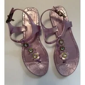 Authentic Coach jelly sandals in a soft pink/rose tone with floral details and crystal accents. Super cute Y2K aesthetic, lightweight and comfortable perfect for summer, vacations, or casual wear.