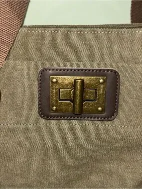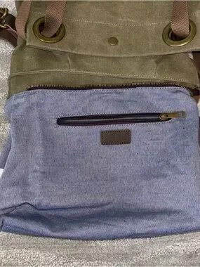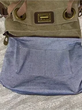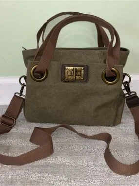ZEDE Paris Pont Des Arts Mini Olive Canvas Leather Bag Tote W Crossbody Strap