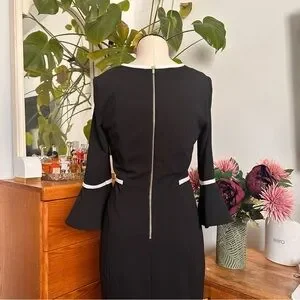Calvin Klein Black Long-Sleeve Sheath Dress with White Trim