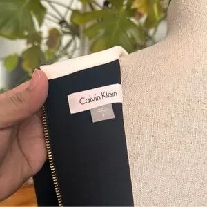 Calvin Klein sheath dress in black with white accent trim. Long sleeves with subtle bell cuffs. Clean boat neckline and tailored silhouette. Minimalist, polished design for formal or professional wear. This is a pre owned pre loved item this means it may have some flaws or wear. In this case it’s in perfect condition no flaws or damage. Please look over all photos before purchasing all sales are final and as is.
