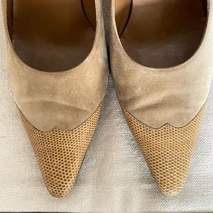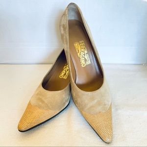 Salvatore Ferragamo Suede/Snake Embossed Leathr Pointed Cap Toe Heels/Shoes 9.5B