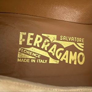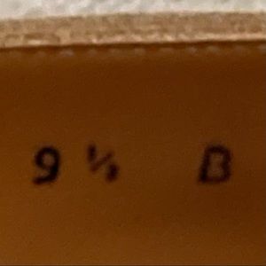 Salvatore Ferragamo Vintage Suede /Snake Embossed Leather Pointed Cap Toe Heels Pumps/Shoes Size 9.5B. The color is Beige/Tan. A gripping half-sole has been installed to make it slip-resistant, and waterproof, and also to protect the sole against general wear and tear. Heels are 3” H approx. They run small and are not true to size. They fit like 9. They are tight on me and I am a true 9.5. One side of the left shoe has a dark mark close to the edge most probably from the sole installation. Also, shoes have Light creases close to the cap toe (see last two pictures). The shoes have no wear or flaws, they are in Excellent Preowned Condition.