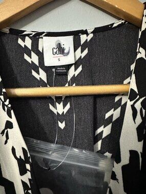 This CAbi X Factor wrap dress is a standout, feminine piece with a flattering silhouette and elevated design. Featuring a bold black and white floral print with kimono-style sleeves and a defined waist tie, it creates a polished yet effortless look that works for both daytime and evening wear. The wrap-style fit enhances the waist while the soft, flowy fabric adds comfort and movement. This is a catalog item, not available in stores. It is brand new without tags (NWOT), never worn, and in pristine condition. ⸻ Details: • Brand: CAbi • Style: X Factor Wrap Dress • Color: Black & White Floral • Sizes Available: Small, Medium • Condition: New Without Tags (NWOT) • Fit: Flattering wrap silhouette with adjustable tie waist • Sleeves: 3/4 length kimono sleeves • Features: V-neckline, A-line skirt, soft drape fabric • Source: Exclusive catalog item (not retail store) ⸻ Dress it up with heels for a chic, polished look or wear it casually with flats or boots for effortless everyday style. ⸻ Keywords/Tags: Cabi Style, Wrap Dress, Kimono Sleeve Dress, Black White Dress, Floral Dress, Elegant Chic, Modern Feminine, Office Chic, Brunch Outfit, Minimalist Style, Capsule Wardrobe, Timeless Fashion, Boutique Style, Quiet Luxury, Effortless Chic CAbi wrap robe in a bold black and white print. V-neck wrap front with a self-tie waist. Three-quarter sleeves with contrasting trim. Smooth, lightweight fabric for lounge or layering.