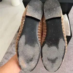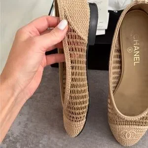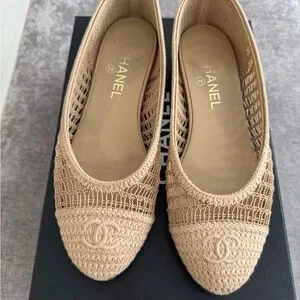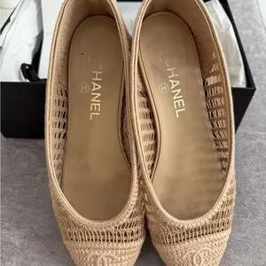 CHANEL Beige Crochet Ballet Flats