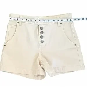 Classic and versatile, these Banana Republic high-waisted twill shorts are a warm-weather staple. Made from a durable yet soft cotton-spandex blend, they feature a flattering high-rise fit, exposed 5-button fly, and a clean ivory tone that pairs effortlessly with your favorite tops and layers.