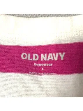 Old Navy Womens Pink & White T-Shirt Large Cotton Y2K Summer Casual Bold Relaxed