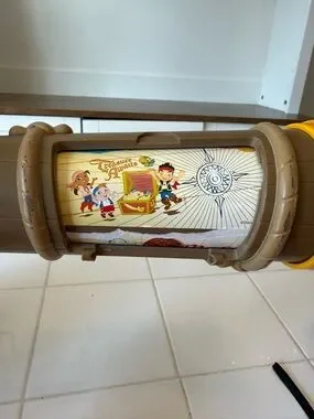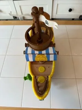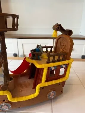 Ship is in good working condition- sounds and songs play with the button by the steering wheel and tick tock croc pops out with the button at the bow of the ship.
