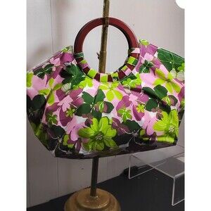 The Dolce Vita Handbag/Top Handle Floral Handbag is a vintage-inspired piece perfect for casual occasions. Made from a cotton blend exterior with a floral pattern, this top handle bag features brown handles and wooden hardware. The multicolor exterior and beige lining add a touch of sophistication to the design, making it a stylish choice for women on the go. Perfect for adding a pop of personality to any outfit, this Dolce Vita handbag is a must-have accessory for the fashion-forward woman.