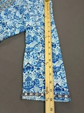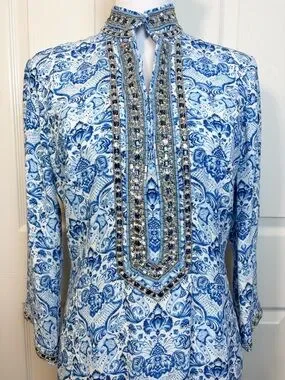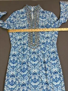 Nicoblu Beaded Resort Dress Blue White Mediterranean Luxe Size 6