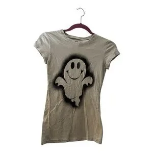 This playful light gray t-shirt features a fun ghost graphic, perfect for adding a touch of whimsy to any outfit. Ideal for those who love a bit of spooky fun.