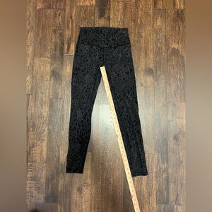 Stylish black and gray leggings with a subtle leopard print. Perfect for casual wear or workout.