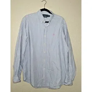 Ralph Lauren Dress Shirt Men's Size XL Blue White Check Gingham Custom Fit