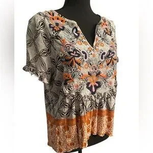 Originally long-sleeved but altered to short sleeves, making it ideal for spring and summer outfits. Easy to pair with jeans, linen pants, or skirts for a casual boho-inspired look.
