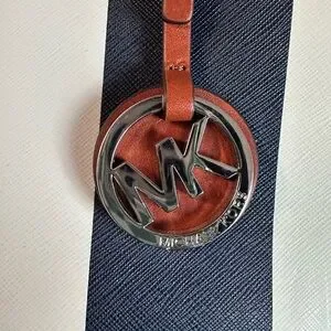 Elegant tote with bold navy and white stripes. Features brown leather straps. Ideal for daily use. Kept in a box with inserts to preserve its like new shape!