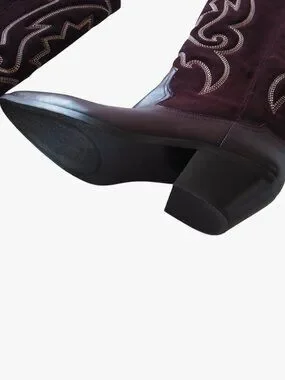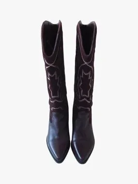 (LIKE NEW) ZARA | 100% LEATHER "EMBROIDERED LEATHER COWBOY BOOTS"