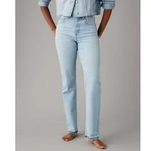 American Eagle Outfitters Super High Rise Straight Jeans in Light Blue Wash