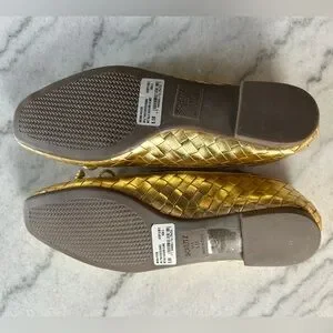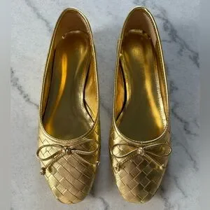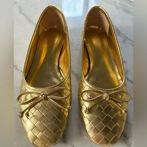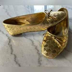 SCHUTZ Gold Woven Ballet Flats with Bow Accent