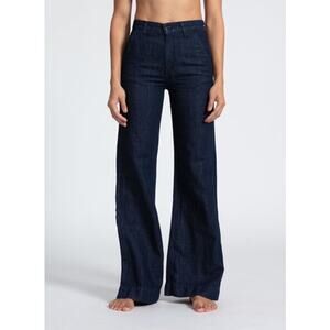 AskK NY Women's Trouser Straight Leg Jeans Linen Indigo Dark Blue Size 28 NWOT