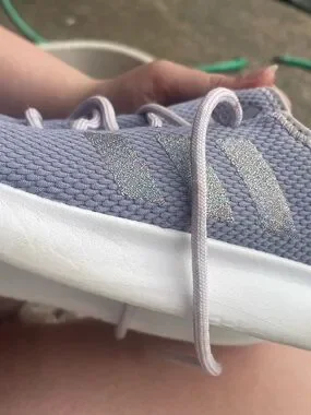 Easy slip-on design for kids. Soft lavender textile upper with elastic straps. Branded adidas logo detail on the strap. Cushioned white sole for everyday play.
