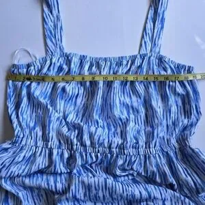 Stylish sleeveless maxi dress in blue and white. Perfect for summer outings.