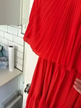 Kate Spade Red Pleated Cape Sleeve Midi Dress