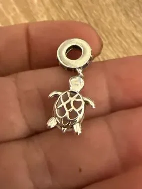 Unknown Brand Silver Turtle Charm with Frosted White Stone