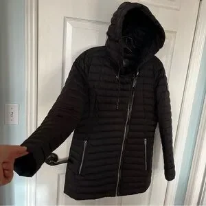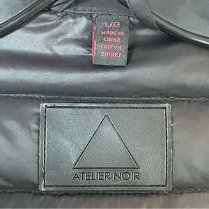 Atelier Noir Black Cortina Coat Quilted Jacket Duck Down Lamb Leather Trim Large