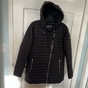 Rudsak Atelier Noir Black Cortina Coat Quilted Jacket Duck Down Lamb Leather Trim Large