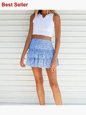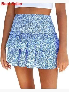 A lightweight, tiered skirt with a smocked waistband, designed for comfortable and stylish wear. Features a playful swing silhouette and floral print, perfect for casual daily outfits or special occasions.