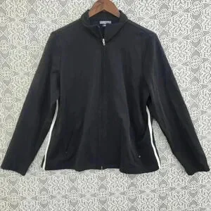 Lands' End Full Zip Mock Neck Polyester Women's Athletic Sweatshirt L Black