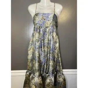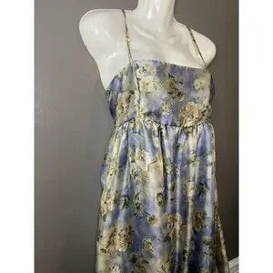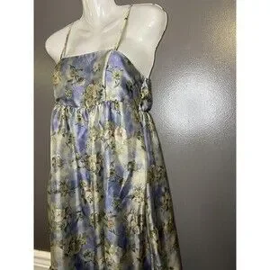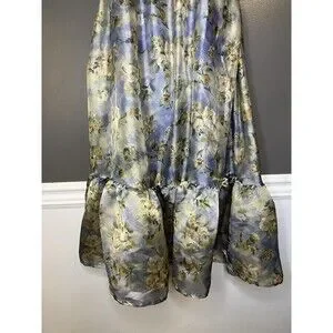 Wild Fable Dress Womens Small Blue Floral Satin Maxi Sundress Ruffle Hem