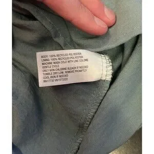 Dress is pre-owned with light overall wear from prior use and handling. Satin shell and lining are clean and intact with no holes or stains, and side zipper and tie straps function properly. Elastic back and seams remain secure, and fabric shows some wrinkling from storage.