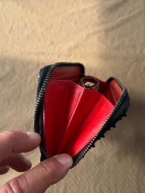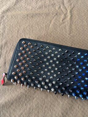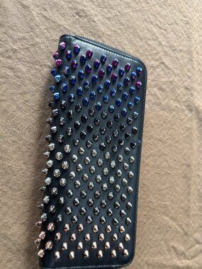 Gently used Christian Louboutin Panettone wallet. This wallet has the colorful multi-metal rainbow studs, not the plain silver. No bag or box. Minimal signs of wear. Coin purse does show some discoloration.
